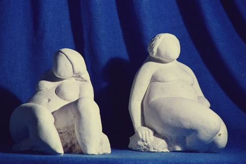 Due Donne due pezzi da 17x20x27, gesso alabastrino, opera unica, 1975Collezione privata - Foto di Mauro Nemesio Rossi
