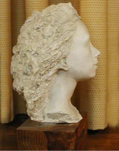 Maria Rita ritratto, 25x25x40, gesso alabastrino, opera unica, 1985, collezione Maria Rita Morici
