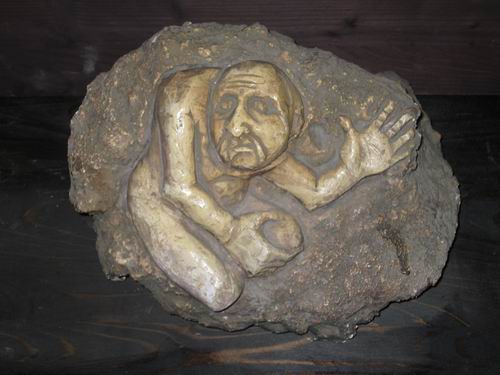 35x30x20, gesso alabastrino patinato seppia, 1974