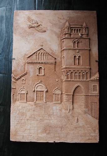 Piazzetta del duomo di Caserta Vecchia 50x75, terracotta, opera unica, 2004, collezione Don Pietro De Felice