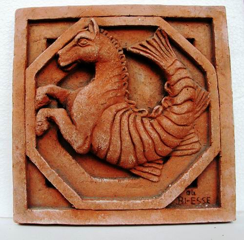 Cavallo Marino 25x25, terracotta*, 2003/4, collezione privata* terracotta dei mattonari, rosa antico. Può essere riprodotta su richiesta senza calco